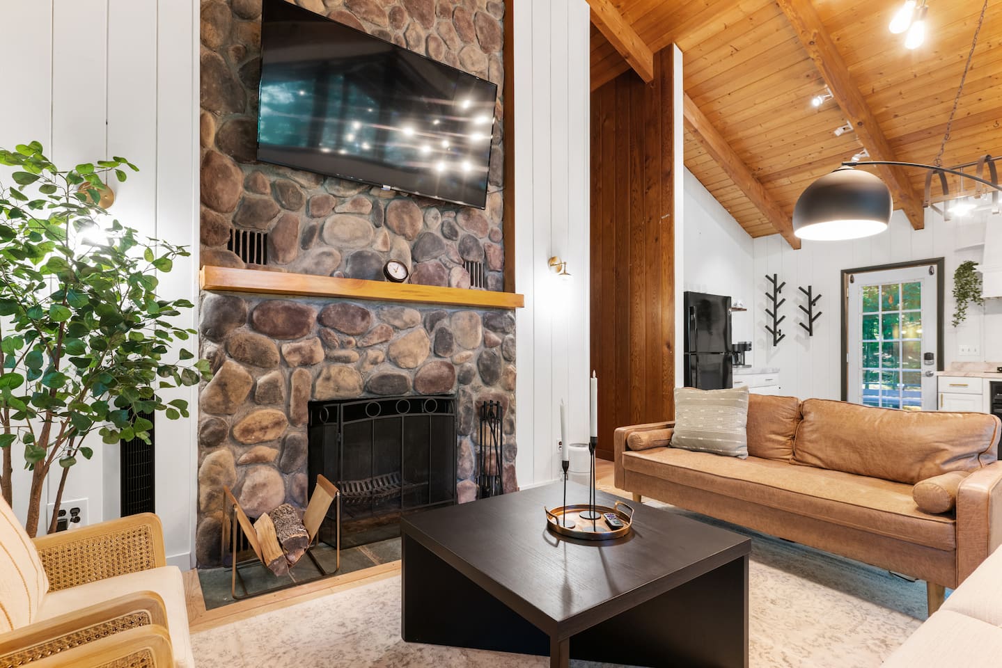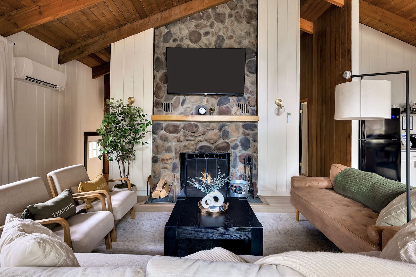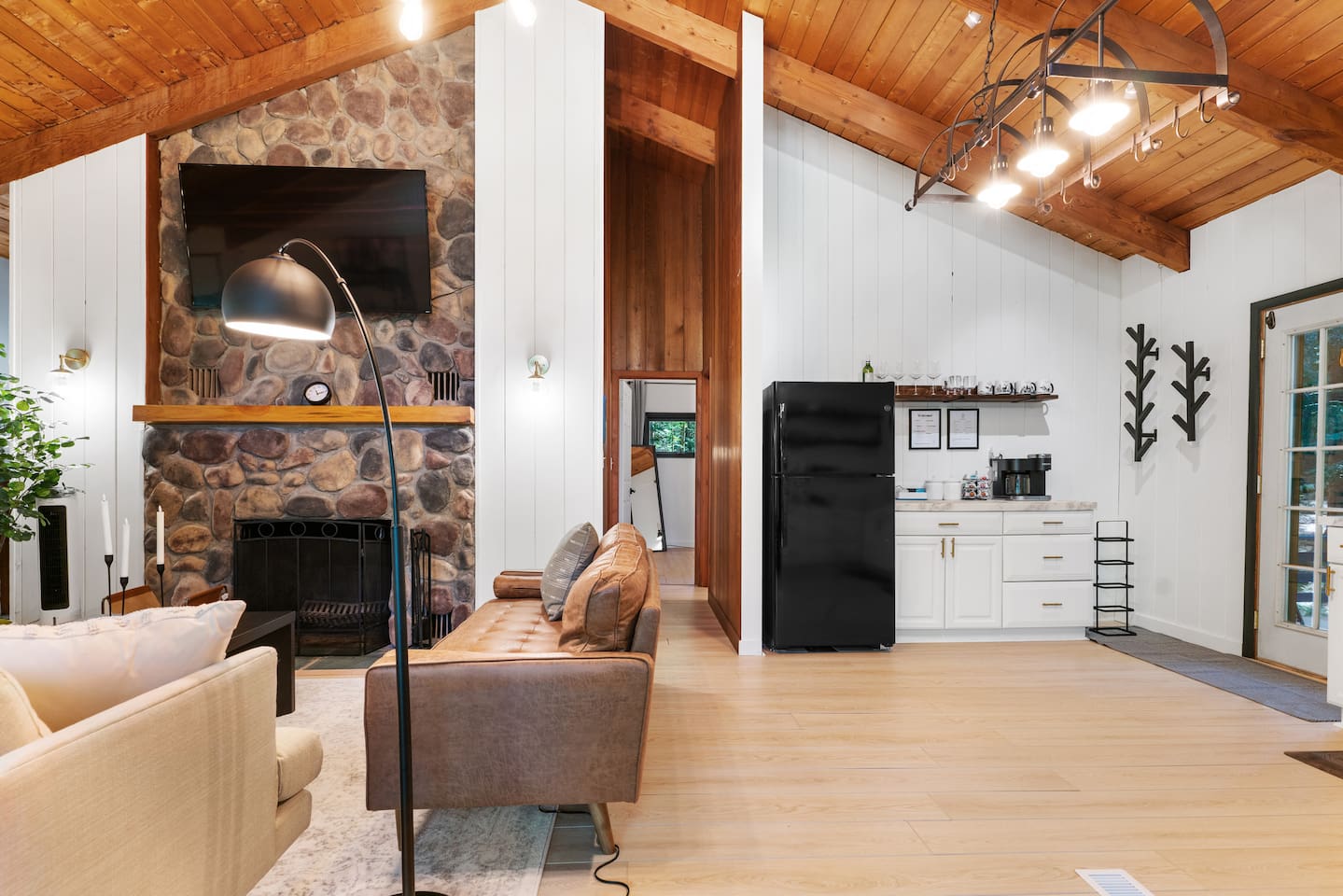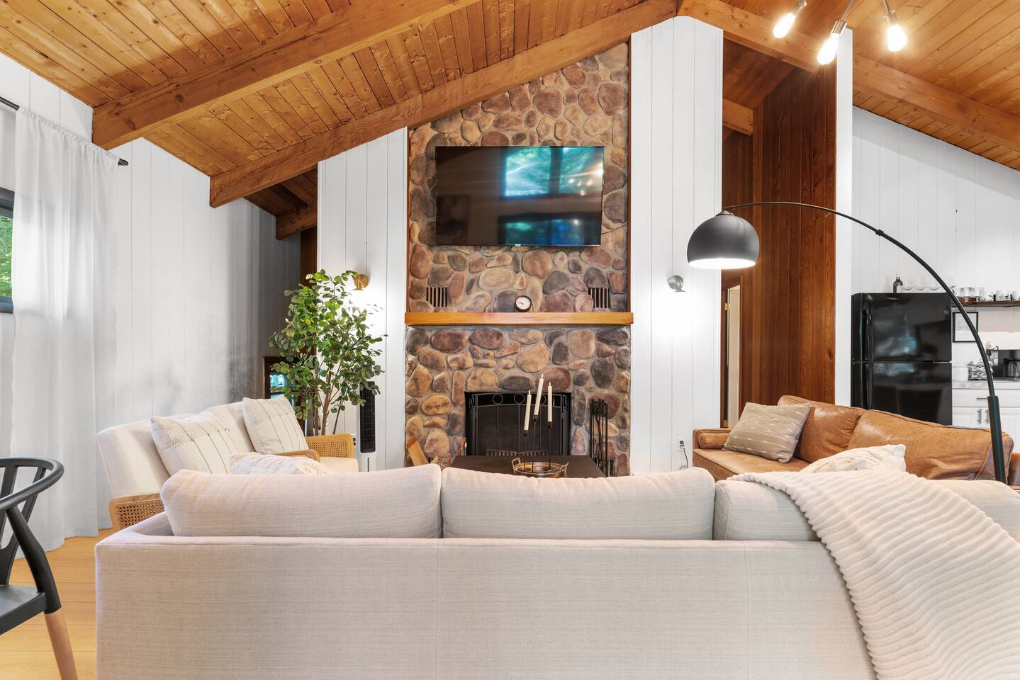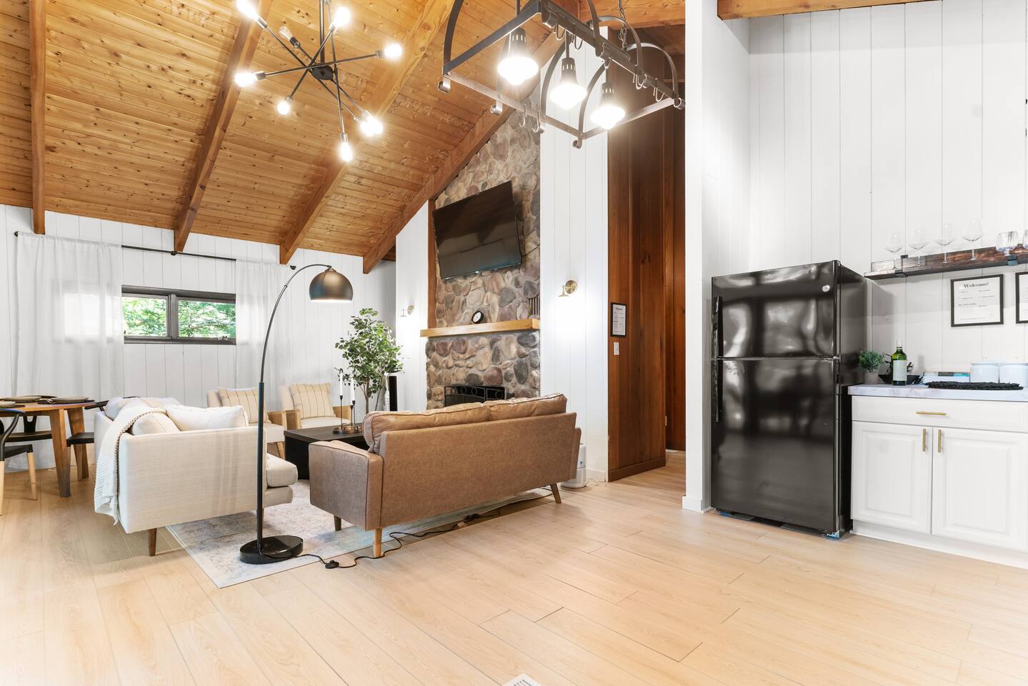 Your stay includes full access to our thoughtfully designed home, featuring both the main level and a fully finished lower level. Upstairs, you'll find tranquil bedrooms and a spacious bathroom with a spa-inspired rain shower. Downstairs offers a second lounge area perfect for relaxing, reading, or streaming your favorite shows—plus a second bathroom for added convenience. The lower level also includes a washer and dryer for guest use, so you can pack light and stay fresh throughout your stay. We kindly ask that you respect the owner’s storage closet, which remains off-limits to guests. Cozy up by the indoor fireplace—safety instructions will be provided upon reservation to ensure a warm and secure experience. Prefer the night air? Head out to our outdoor fire pit for unforgettable evenings under the stars. Take a dip in our 24/7 accessible jetted hot tub, complete with safety guidelines shared at booking. It’s the perfect way to unwind after a day of adventure. And with parking for up to four vehicles, coming and going is easy and convenient for your whole group.