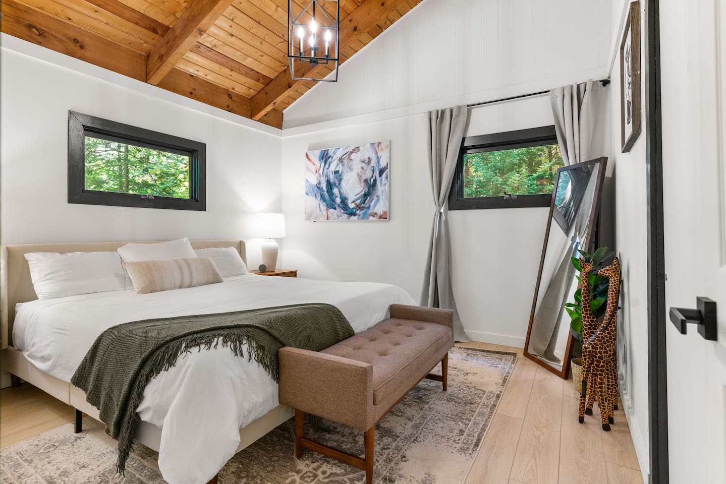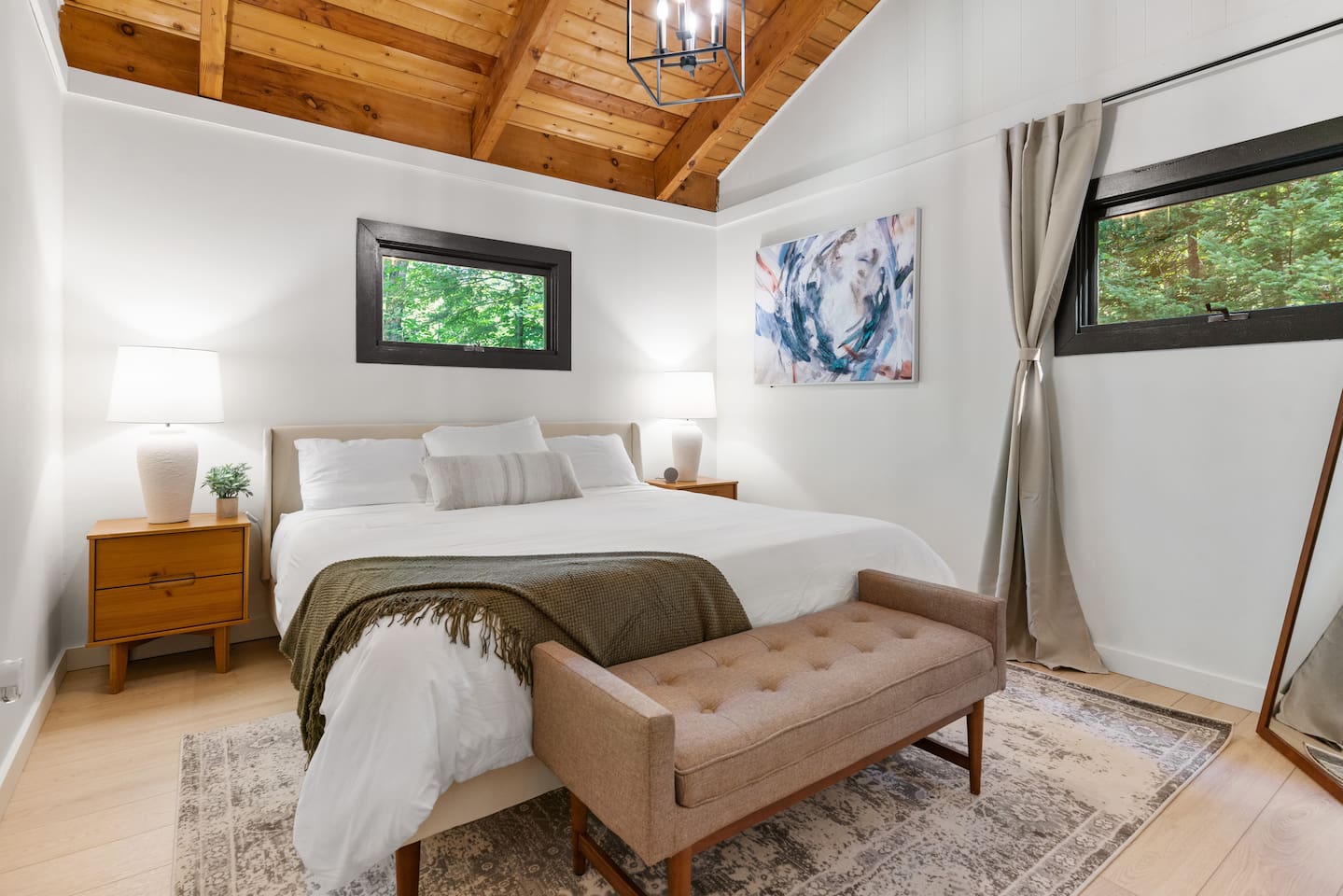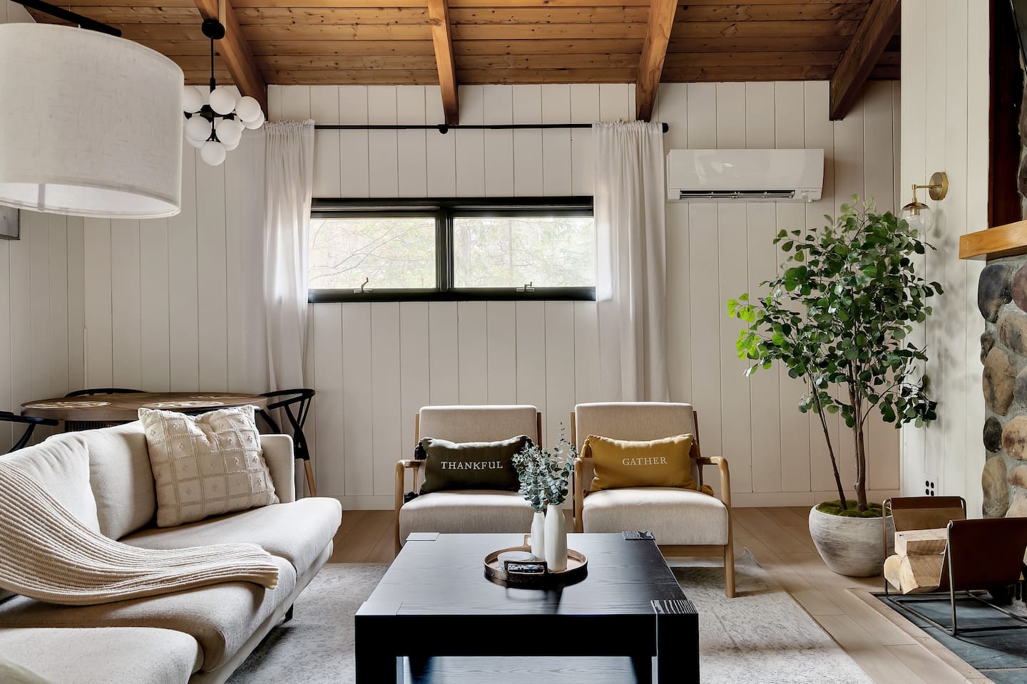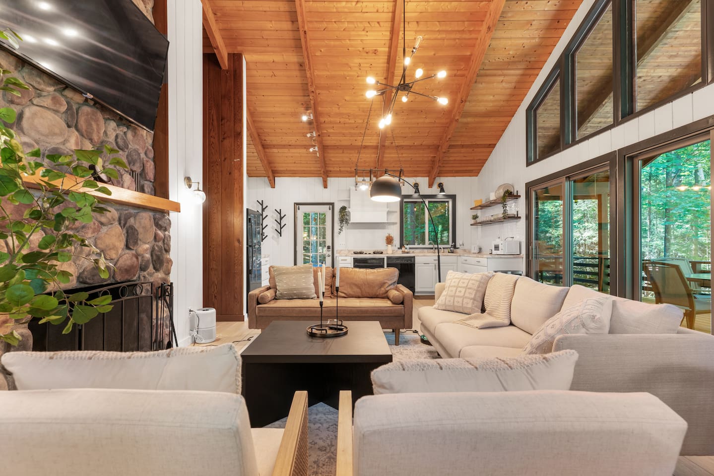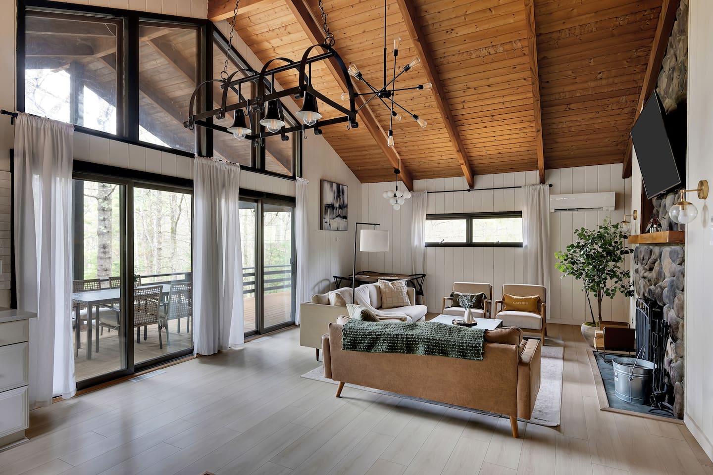 Your stay includes full access to our thoughtfully designed home, featuring both the main level and a fully finished lower level. Upstairs, you'll find tranquil bedrooms and a spacious bathroom with a spa-inspired rain shower. Downstairs offers a second lounge area perfect for relaxing, reading, or streaming your favorite shows—plus a second bathroom for added convenience. The lower level also includes a washer and dryer for guest use, so you can pack light and stay fresh throughout your stay. We kindly ask that you respect the owner’s storage closet, which remains off-limits to guests. Cozy up by the indoor fireplace—safety instructions will be provided upon reservation to ensure a warm and secure experience. Prefer the night air? Head out to our outdoor fire pit for unforgettable evenings under the stars. Take a dip in our 24/7 accessible jetted hot tub, complete with safety guidelines shared at booking. It’s the perfect way to unwind after a day of adventure. And with parking for up to four vehicles, coming and going is easy and convenient for your whole group.