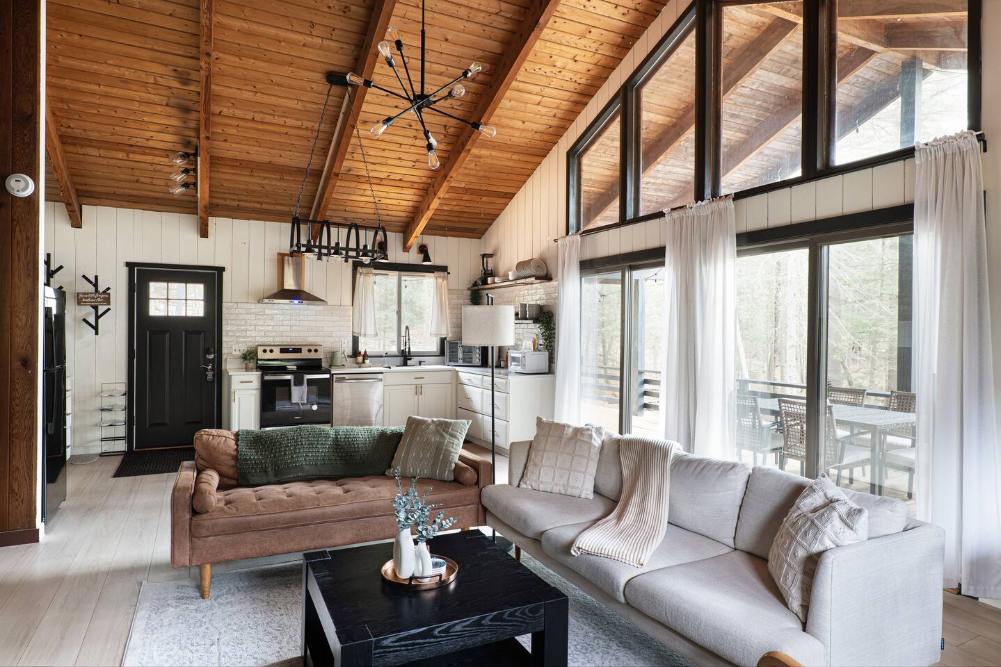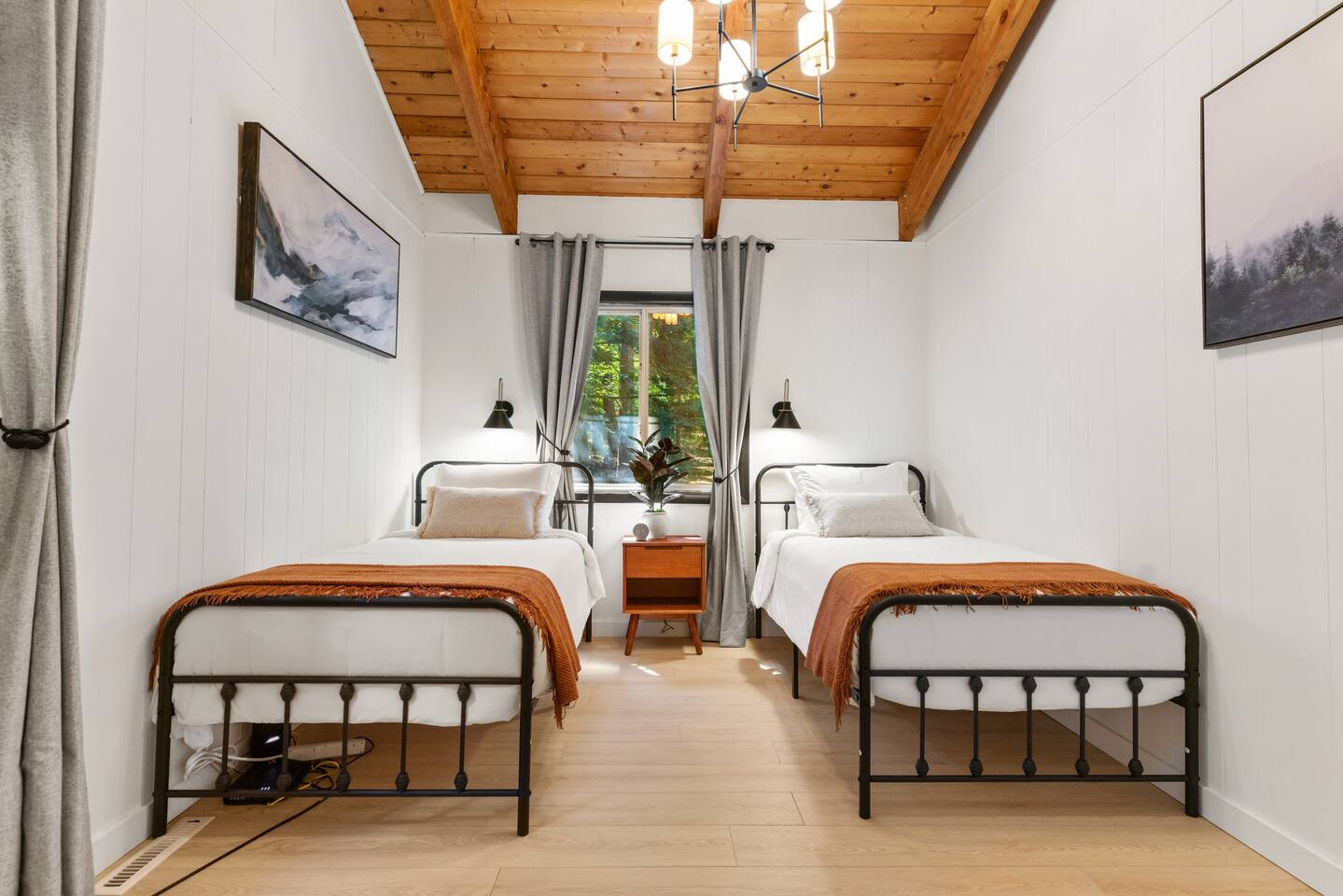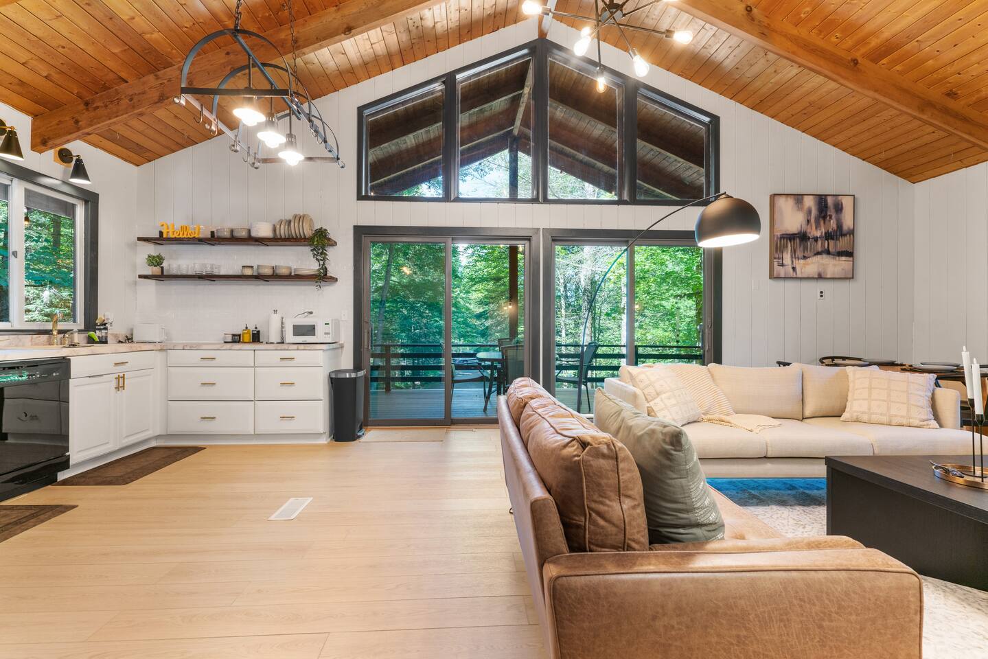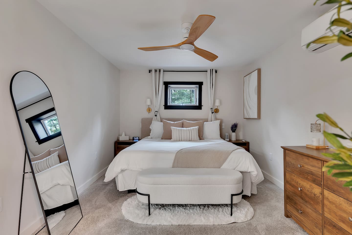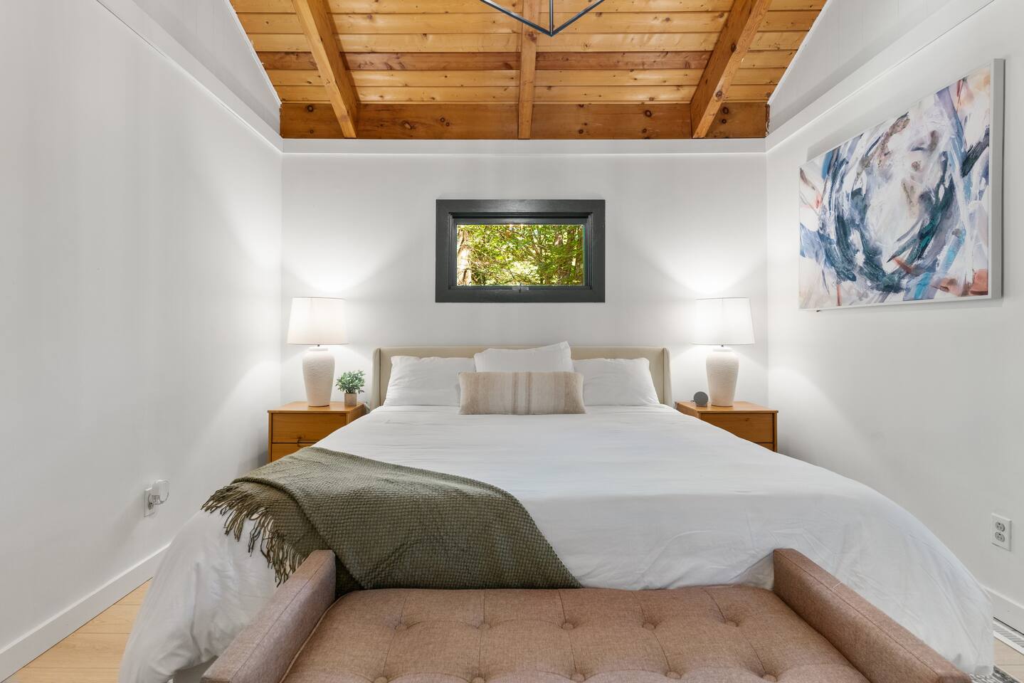 Your stay includes full access to our thoughtfully designed home, featuring both the main level and a fully finished lower level. Upstairs, you'll find tranquil bedrooms and a spacious bathroom with a spa-inspired rain shower. Downstairs offers a second lounge area perfect for relaxing, reading, or streaming your favorite shows—plus a second bathroom for added convenience. The lower level also includes a washer and dryer for guest use, so you can pack light and stay fresh throughout your stay. We kindly ask that you respect the owner’s storage closet, which remains off-limits to guests. Cozy up by the indoor fireplace—safety instructions will be provided upon reservation to ensure a warm and secure experience. Prefer the night air? Head out to our outdoor fire pit for unforgettable evenings under the stars. Take a dip in our 24/7 accessible jetted hot tub, complete with safety guidelines shared at booking. It’s the perfect way to unwind after a day of adventure. And with parking for up to four vehicles, coming and going is easy and convenient for your whole group.