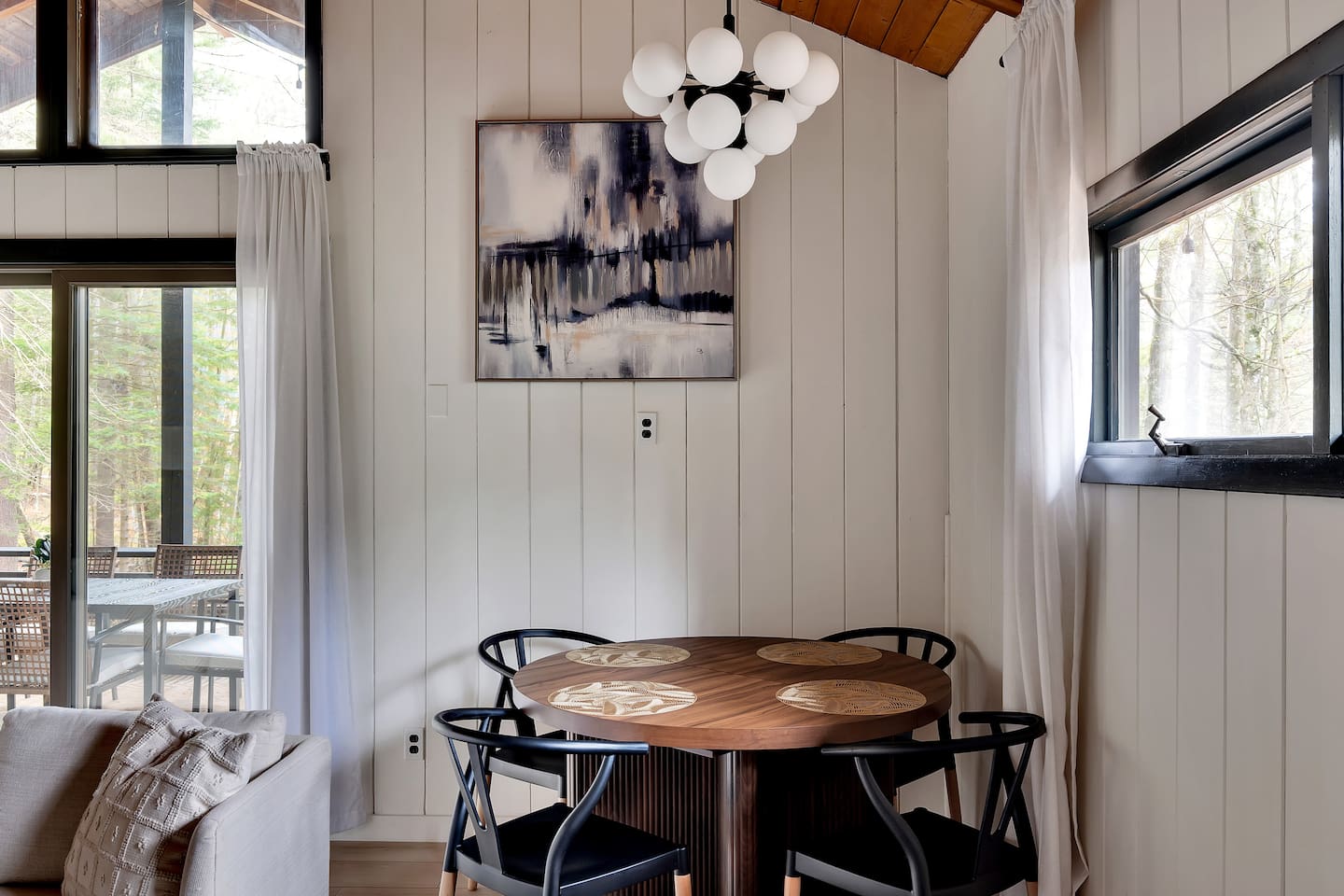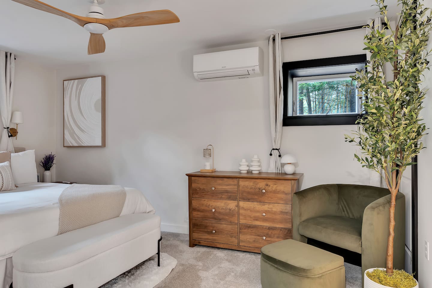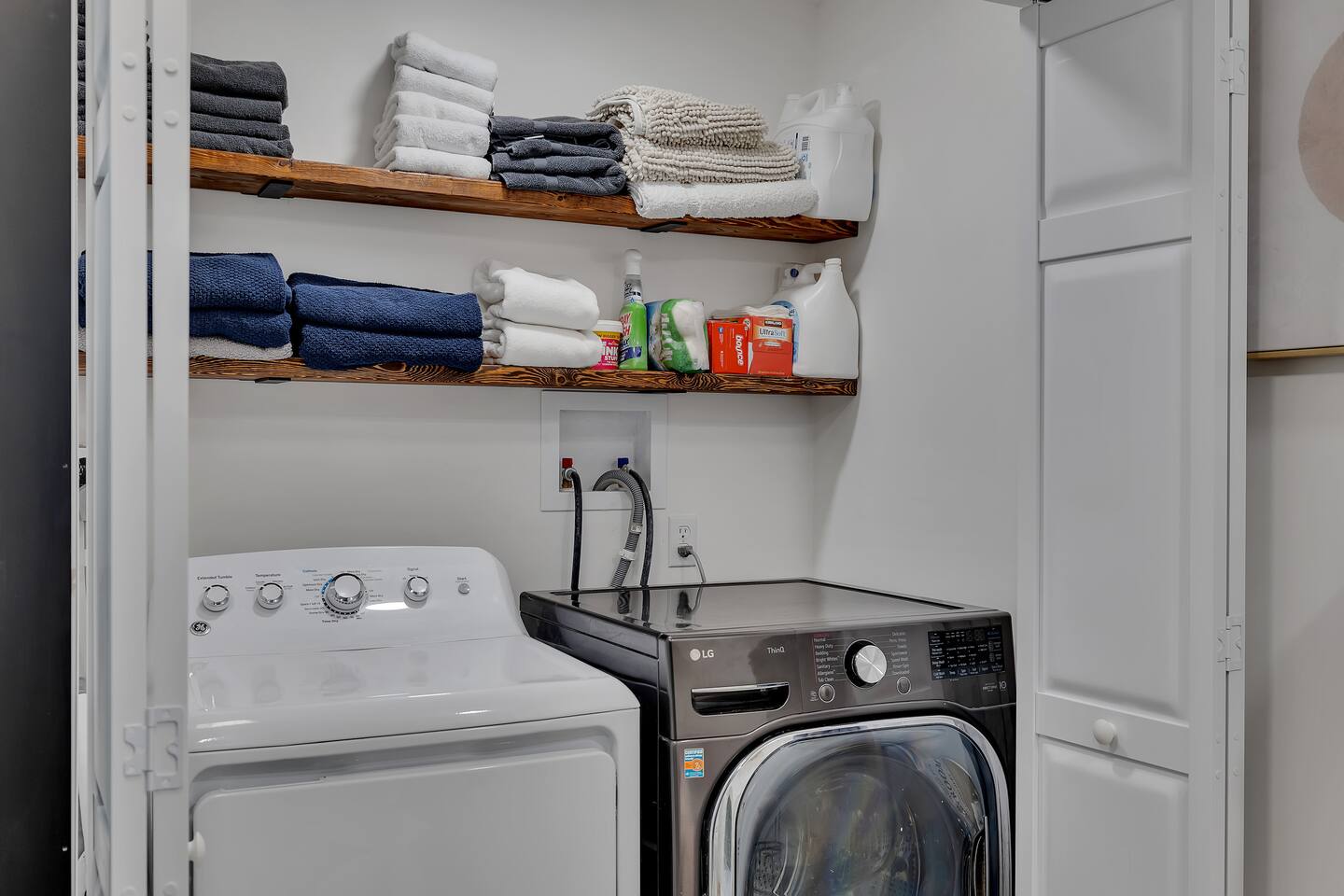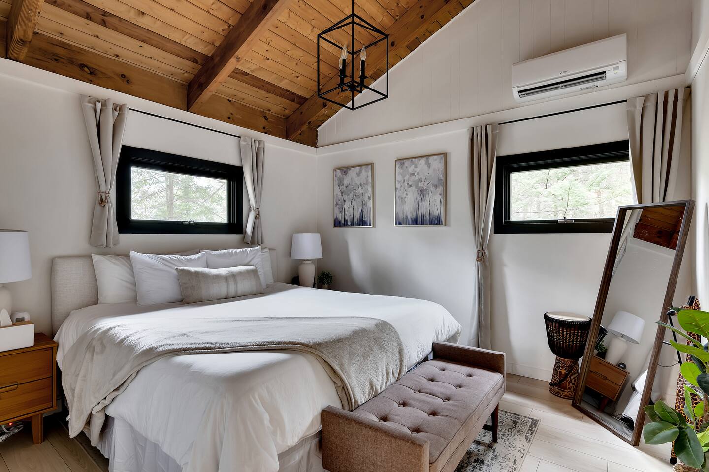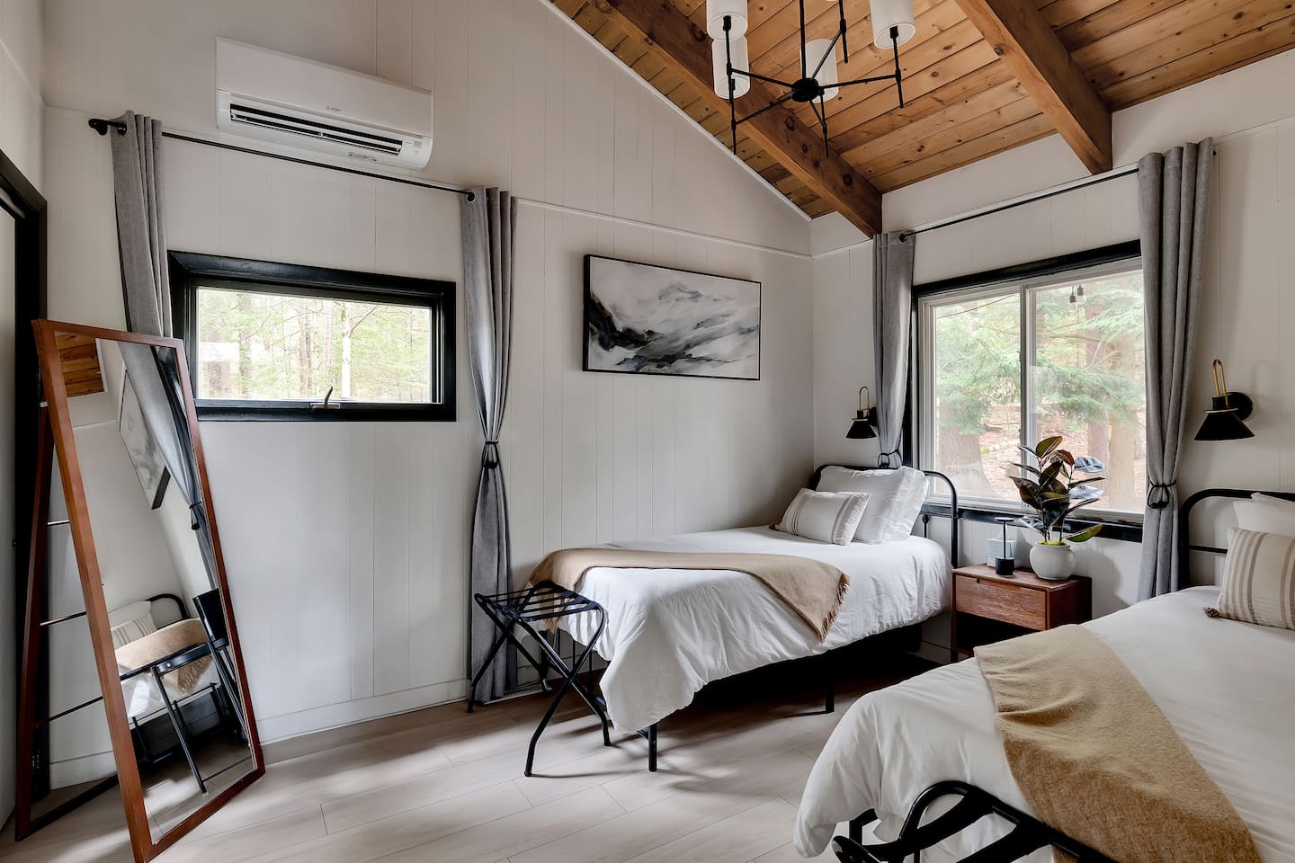 Your stay includes full access to our thoughtfully designed home, featuring both the main level and a fully finished lower level. Upstairs, you'll find tranquil bedrooms and a spacious bathroom with a spa-inspired rain shower. Downstairs offers a second lounge area perfect for relaxing, reading, or streaming your favorite shows—plus a second bathroom for added convenience. The lower level also includes a washer and dryer for guest use, so you can pack light and stay fresh throughout your stay. We kindly ask that you respect the owner’s storage closet, which remains off-limits to guests. Cozy up by the indoor fireplace—safety instructions will be provided upon reservation to ensure a warm and secure experience. Prefer the night air? Head out to our outdoor fire pit for unforgettable evenings under the stars. Take a dip in our 24/7 accessible jetted hot tub, complete with safety guidelines shared at booking. It’s the perfect way to unwind after a day of adventure. And with parking for up to four vehicles, coming and going is easy and convenient for your whole group.