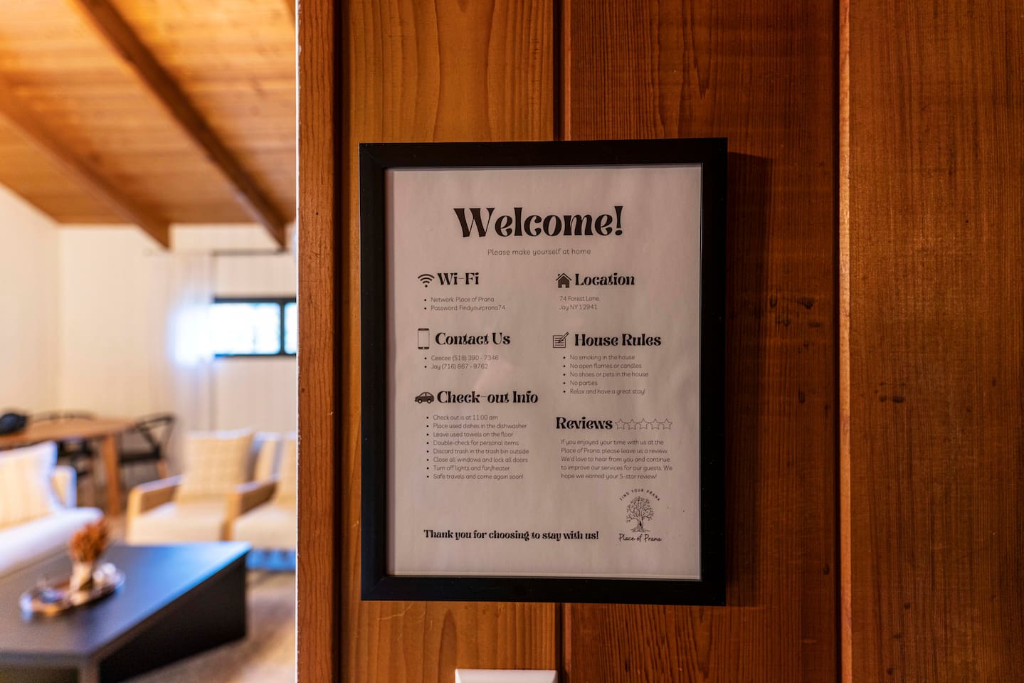 1) Self-Care Wellness Amenities 👉 Enhance your stay with our wellness offerings! We provide in-house massages and individual or group yoga classes for an additional fee—please inquire for details. The Wellness Box, located in the closet near the bedrooms, includes yoga mats, yoga blocks, 5 lb dumbbells, and more. For your personal rejuvenation, unwind in the massage chair, enjoy red light therapy, or retreat to the cozy reading nook—perfect for quiet moments of rest and reflection. 2) Exterior Cameras 👉 For your security, the cabin is equipped with two exterior cameras. Please note, there are no cameras inside the cabin. 3) House Amenities 👉 Keyless entry 👉 Free Wi-Fi throughout the house 👉 Two Smart TVs in the living rooms (Upstairs and Downstairs) 👉 Bluetooth speaker 👉 Washer & dryer 👉 Jetted hot tub for six people (always available for guest use) 👉 Massage chair, red light therapy lamp, and vinyl record player 👉 Reading nook for quiet relaxation 👉 Additional lounge space in the finished downstairs area 4) Griddle & Fireplace 👉 To use the indoor or outdoor fireplace, please bring your own firewood and kindling sticks. Propane is provided for the griddle. 5) Supplies Provided - 1 dish sponge - 1 roll of paper towels - 1 dish detergent - 5 trash bags - 1 roll of toilet paper per bathroom - 5 dishwashing capsules in the kitchen - Hand soap, body wash, shampoo, and conditioner in each bathroom - Eco-friendly, allergy-friendly laundry detergent and dryer sheets For additional supplies, visit: - Little Supermarket (Wilmington, NY; 7 minutes away) - Tops Friendly Markets (Au Sable Forks, NY; 12 minutes away) - Hannaford (Lake Placid; 30 minutes away) 6) Parking 👉 The driveway is plowed in winter, but AWD/4WD is recommended for navigating the Adirondack area during snowy conditions. 7) Pets 👉 No pets are allowed due to family allergies. 8) Baby Equipment 👉 A crib and other baby items are available for guests with children. 9) Cleaning Fee 👉 The cleaning fee covers basic cleaning. Please leave the house as you found it (plus normal wear and tear). Additional fees may apply for: - Stained towels, bed linens, walls, furniture, or other items - Garbage not placed in the trash can or trash bag - Liquid or food spills - Any extra cleaning or treatment that delays the normal turnover of the house 10) Kitchen - Full access to the kitchen with oven, air fryer, microwave, refrigerator, dishwasher, coffee maker, and toaster - All food items will be removed after check-out. No food or coffee is provided prior to check-in. 11) Bathroom - Shampoo, conditioner, and body wash provided - Report any leaks or plumbing issues immediately for prompt repair 12) Housekeeping - No daily housekeeping service. The house will be thoroughly cleaned before check-in. - Mid-stay cleaning services can be requested for an additional fee.