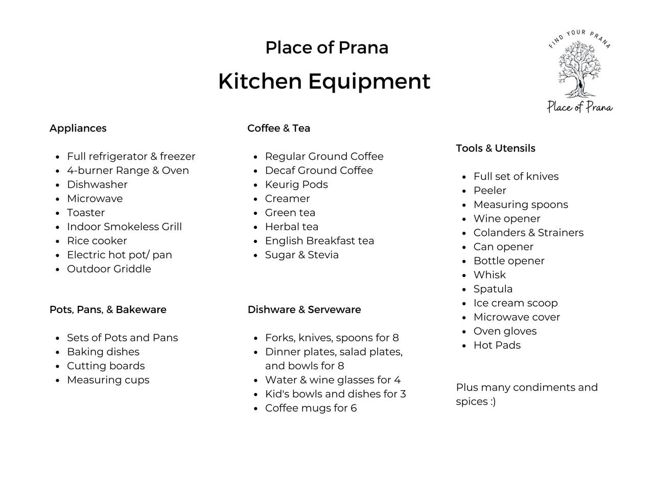 - Kitchen Space where guests can cook their own meals